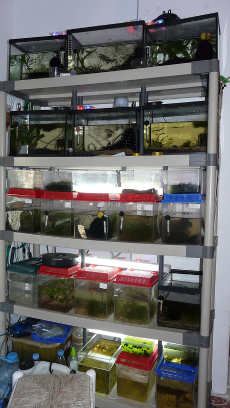 En la tercera valda se encuentran los anuales y sobre ellos los acuarios de crías.